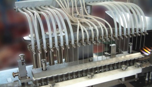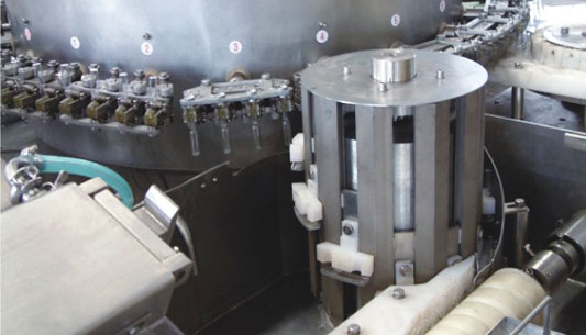 The machine adopts an 8 to 16 station stepping type transmission system, desktop type structure, automatic completion from ground dragon into bottles, before nitrogen (or at ChongQi), filling and fullback nitrogen, preheating, drawing out the full set of the bottle to the sealing of the production process. This machine can use single can also with vertical ultrasonic cleaning machine, sterilization drying set into linkage line use.